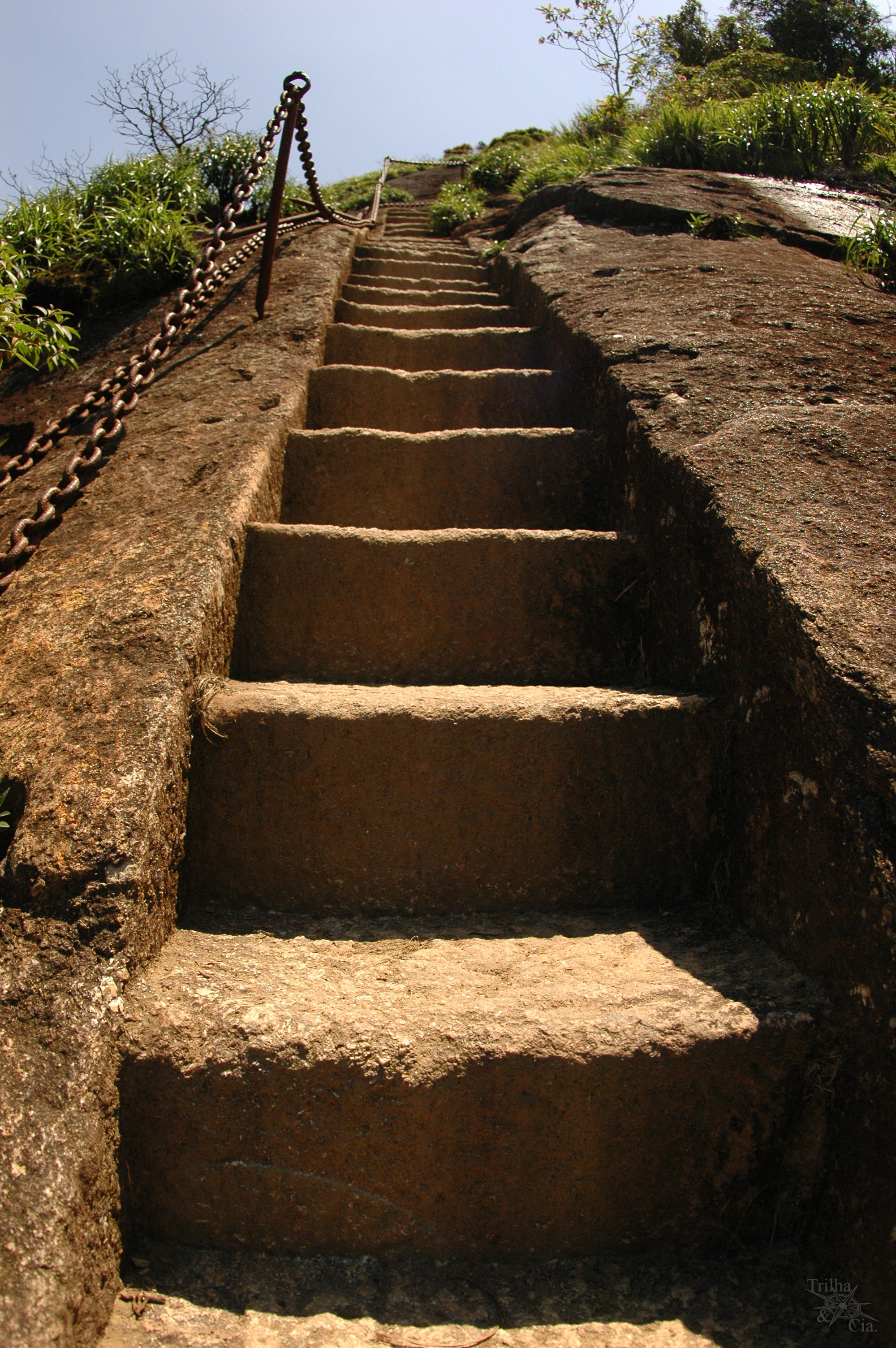 Caminhada de 1:00 a 1:30 de subida e 1 hora de descida. Lance final vertiginoso em escadaria esculpida na pedra.